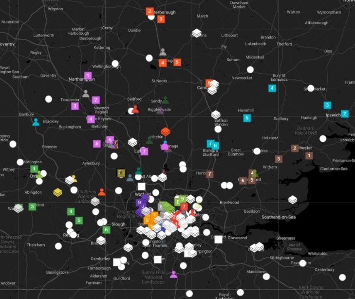 All the colourful markers are the jobs installers from our Stevenage depot completed by the end of last week.