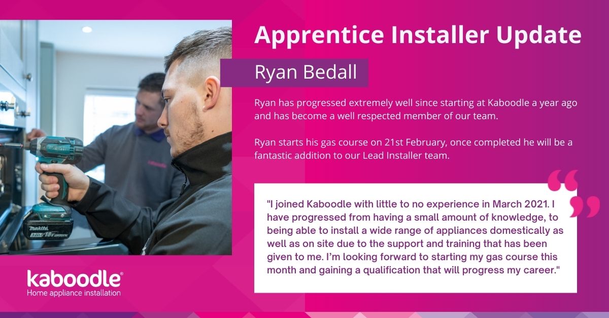 An update on one of our first year Apprentice Installers, Ryan Beddall.